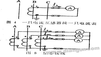 (2)星形接线,如图5所示,主要用于测量负荷不平衡的三相电力装置三相四线装置的三相电流。