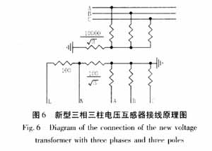 最近,由江西互感器厂生产的由三相三柱式电压互感器与单相式零序电压互感器组合,如图5所示,构成了具有消谐功能的电压互感器组,主互感器的变比为