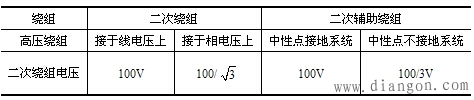 表 电压互感器的二次绕组电压