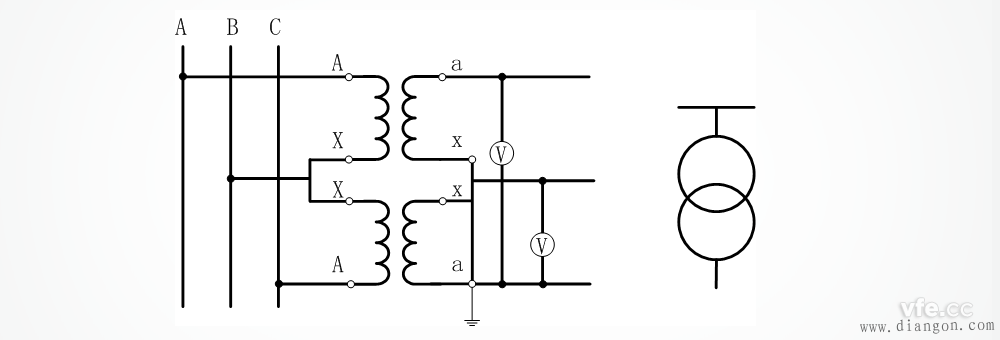 两个单相电压互感器互V/V型的接线方式