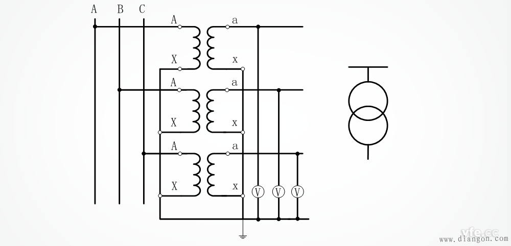 三、三个单相电压互感器Y0/Y0型的接线方式