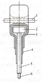 1-一次导体;2-二次绕组;3-高压电屏;4-中间电屏;5-地电屏;6-支架