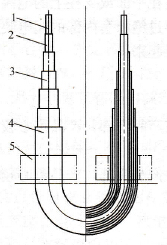 1-一次导体;2-高压电屏;3-中间电屏;4-地电屏;5-二次绕组