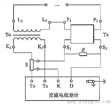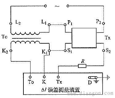 如上图所示为使用差值法原理测量装置测量非传统电流互感器电压输出误差的线路。误差测量装置为交流电位差型,检流计串接在差压回路,调节电压微差源使检流计指示平衡时,差压回路电流接近为零。S是准确度不低于0.02级的低感分流器,把电流标准装置的二次电流变换为与被试互感器二次输出名义值相同的电压,然后按阻抗电桥原理测出误差。