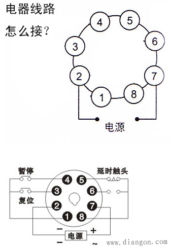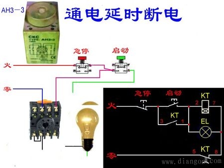 把你需要延时通电的设备接到9-5或12-8就可以了。比如你要把一个灯泡延时点亮,那你先把零线直接与灯泡连接,火线接在9或12端子上,再把5或8连接到灯泡上就好了。