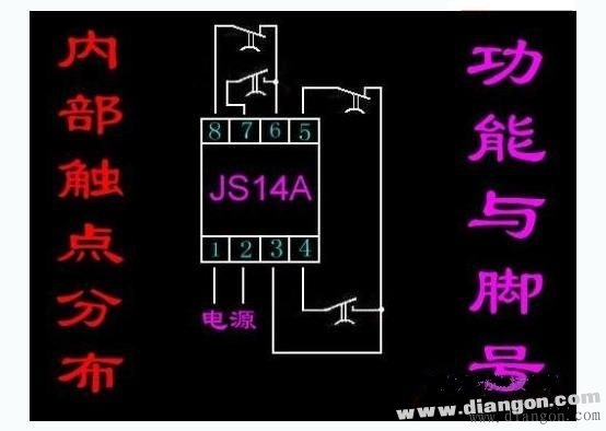 接通电源后,继电器开始计时,到达设定时间,继电器动作,1-9断开,5-9接通.对面也是一样的.