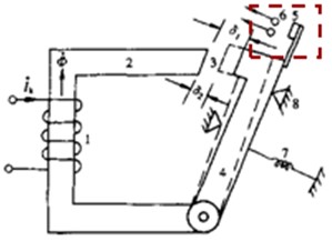 本文将要学习电磁型继电器的组成与工作原理,从而运用到电流互感器和电压互感器中并了解其功能。 一、电磁型继电器的组成与工作原理 通过图示介绍电磁型继电器的组成,初步认识电磁型继电器,并且通过讲解工作原理深入了解电磁继电器。 1. 电磁型电流继电器的组成如下结构图所示: