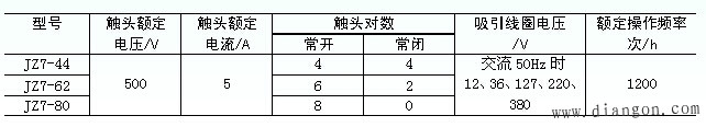 表2 JZ7系列中间继电器的主要技术数据
