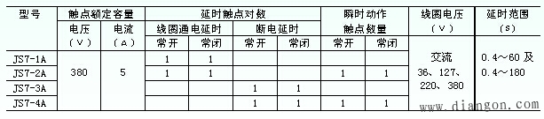 表1所示为JS7-A系列空气阻尼式时间继电器的技术数据,其中JS7-2A型和JS7-4A型既带有延时动作触头,又带有瞬时动作触头。