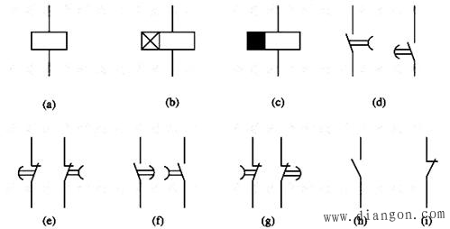 (g)延时闭合常闭触头;(h)瞬动常开触头;(i)瞬动常闭触头
