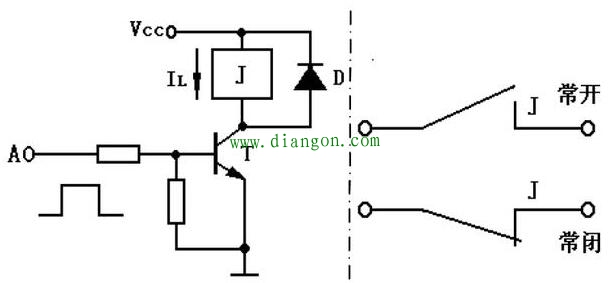 继电器隔离原理如上图所示,当输入高电平时,晶体三极管T饱和导通,继电器J吸合;当A点为低电平时,T 截止,继电器J则释放,完成了信号的传递过程。D是保护二极管。当T由导通变为截止时,继电器线圈两端产生很高的反电势,以继续维持电流IL。由于该反电势一般很高,容易造成T的击穿。加入二极管D后,为反电势提供了放电回路,从而保护了三极管T。