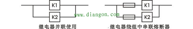 在一些重要的控制及联锁电路中,可增加相同继电器,即选用两只同规格、同参数的电压继电器并联使用,除绕组并联外,电触点也可以并联使用,这样可靠性将大大提高。