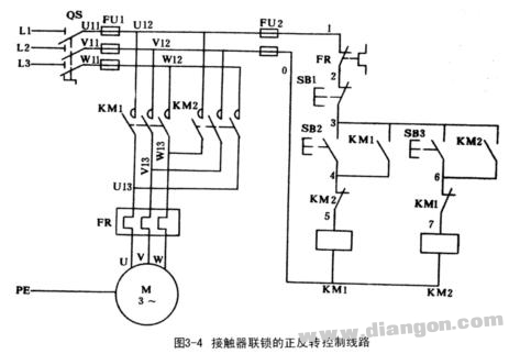 四、电动机正向(或反向)启动运转后,不必先按停止按钮使电动机停止,可以直接按反向(或正向)启动按钮,使电动机变为反方向运行。
