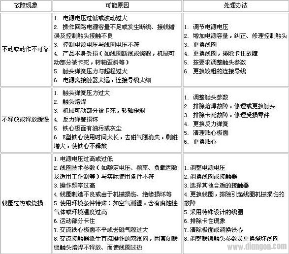 交流接触器常见故障及处理办法