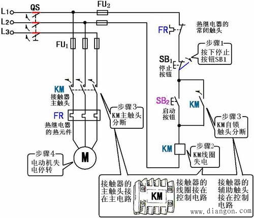 电动机的停止动作示意图(接触器自锁正转控制线路)