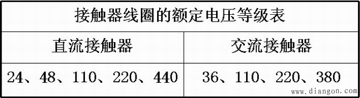 图1.3.5 接触器的主要技术参数 ◆ 线圈的额定电压 图1.3.6 线圈的额定电压 ◆ 接通与分断能力 接触器在规定条件下,能在给定电压下可靠接通和分断的预期电流值。 接通时:主触点不应发生熔焊。 分断时:主触点不应发生长时间燃弧。 ◆ 机械寿命与电气寿命 机械寿命:1000万次以上 电气寿命:100万次以上 ◆ 操作频率 每小时的操作次数,一般为:300次/h、 600次/h、 1200次/h几种。 |