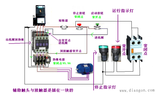 控制指示灯的是接触器的辅助触点的常开和常闭点,当按下启动时接触器吸合,辅助触点的常开点闭合 红灯得电指示灯亮,处于运行状态;处于停止状态时 辅助触点常闭点 处于闭合状态 绿亮显示停止状态指示灯是显示设备运行状态的 不用另外接开关。