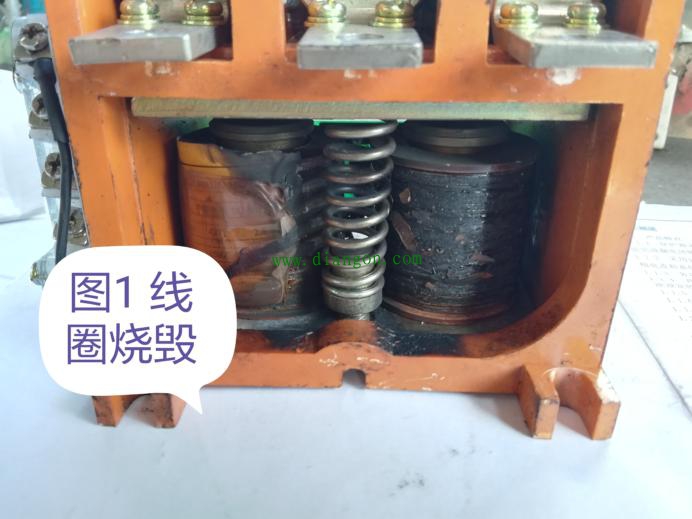 大家请看图1,这是一台吸合线圈已烧的面目全非之真空交流接触器。这个现象就是接触器所存在的一个秘密或者说是缺点。原来CKJ系列真空交流接触器的吸合线圈均为直流驱动方式(故接触器吸力磁铁当中必然无短路环),在交流电源与吸合线圈间使用由四支整流二极管(多为IN54XX系列)组成的整流桥进行电源转换。