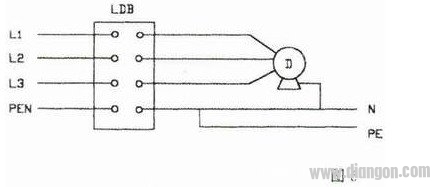 图6接零保护线通过检测互感器,设备当出现漏电时,由于相线漏电流经接零保护线又回过检测互感器,使互感器检测不出漏电流,致使漏电保护器不动作。