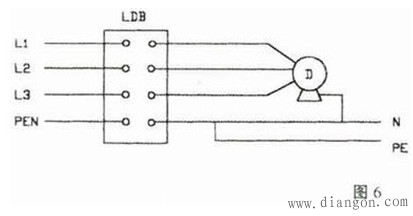图6接零保护线通过检测互感器,设备当出现漏电时,由于相线漏电流经接零保护线又回过检测互感器,使互感器检测不出漏电流,致使漏电保护器不动作。