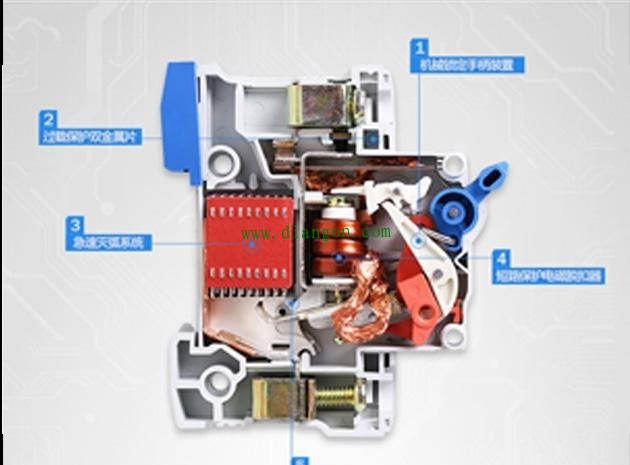 空气开关也成为空气断路器。空气开关的原理就是以空气作为绝缘介质,在电路中接通电流,使元件产生热量,促使里面的双金属片受到热量之后向上弯曲,推动杠杆,使锁住的锁扣打开,切断电源,从而空气开关就会自己自动跳闸,达到一个保护电流的作用。一般自动跳闸的情况,都是因为电路承载过重,或者短路等问题。而锁扣的打开就是采用杠杆装置,杠杆的推动可以让锁扣开启,达到自动跳闸的目的。空气开关和漏电开关的区别比起来,在原理上,空气开关比较复杂些。