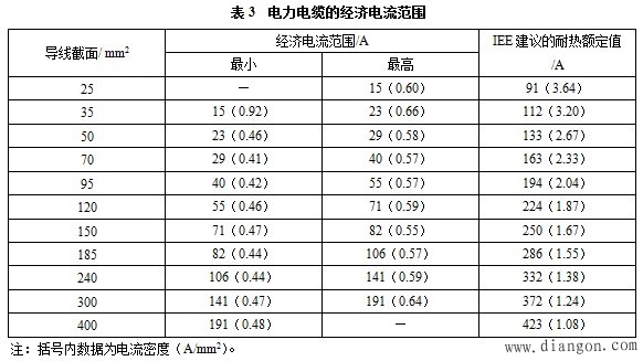表2中的经济密度值为1.83-3.84A/ mm2,高于IEE建议的乃热额定值,与1956年颁布的电流密度接近,故不能称为经济电流密度,而只是对初期投资的开发商有利的电流密度。