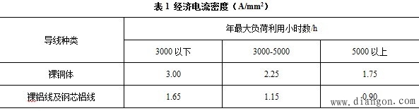 文献中指出,套用水电部1956年颁布的经济电流密度数值(见表1)是不符合目前实际情况的,因为现在的物价、电价、设备折旧率等因素已不同于几十年前。