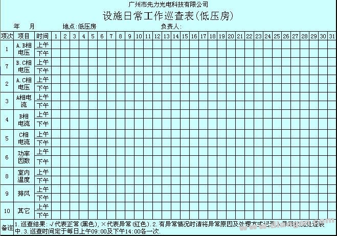 1)制定表格要求值班电工天天填定功率因素值,发现过低的功率因素值时及时纠正。