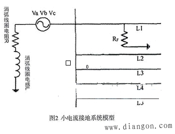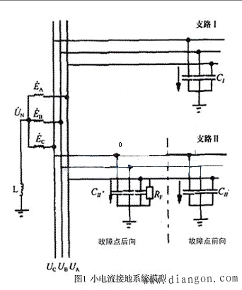 2)接地选线小波分析法。若小电流接地系统出现单项接地故障,那么将会存在一个较为明显的暂态过程,特别是对于暂态接地的电容电流,该过程都将包含丰富的故障特征,但往往我们会忽视了这些特征。而小波理论则为故障选线提供了较为有利的条件。通过对小电流接地系统数字模型进行研究,仿真得到了故障发生前的几个周波暂态信号波形,而通过对接地故障产生时刻信号进行小波分解,得到一种基于小波能量方法接地的选线选相判据。该接地系统模型具体如图2所示。