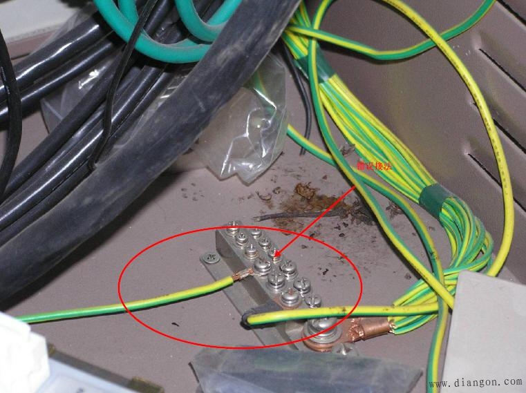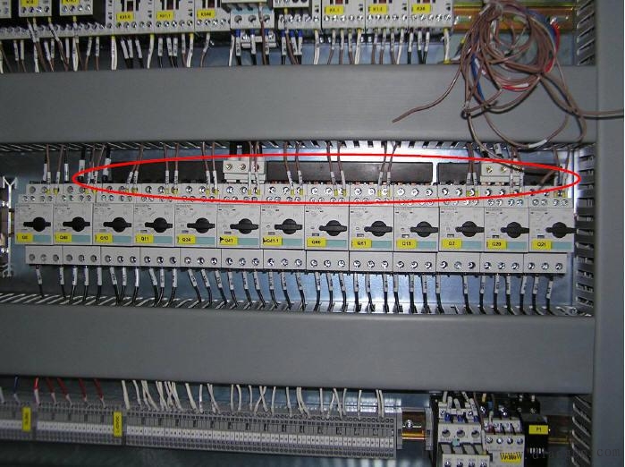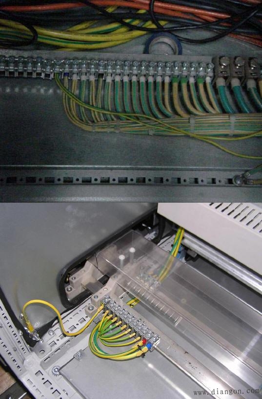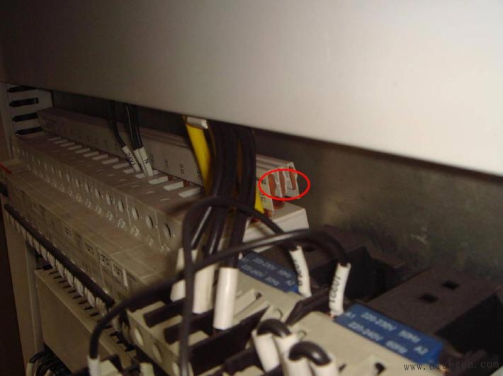 5.当交流主电路穿越形成闭合磁路的金属框架时,三相母线应在同一框孔中穿过。接线不规范,必须把进入线槽的大电缆外层都剥开,把所有导线压进线槽