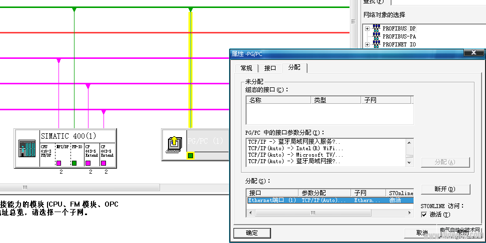 PG/PC不能挂到以太网上,请问这说为没什么。我想挂到以太网去。通过plc-CPU 可以监控变频器上的参数。变频器和PLC是DP通讯答:如果是通过交换机连接到PLC,PC的IP地址要和PLC的IP地址在同一网段,一般是IP地址的前3位相同。如果监控西门子变频器的参数,可以利用PLC的路由功能通过以太网访问变频器参数,还需要安装DriveES软件,在NetPro里组态PG/PC,为PG/PC分配连接,有网友的配置图