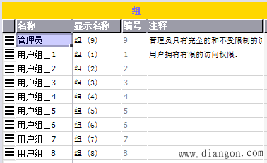 3. 在运行系统用户管理-用户管理-组中定义相应的用户组,每个组都唯一对应一个编号