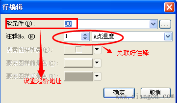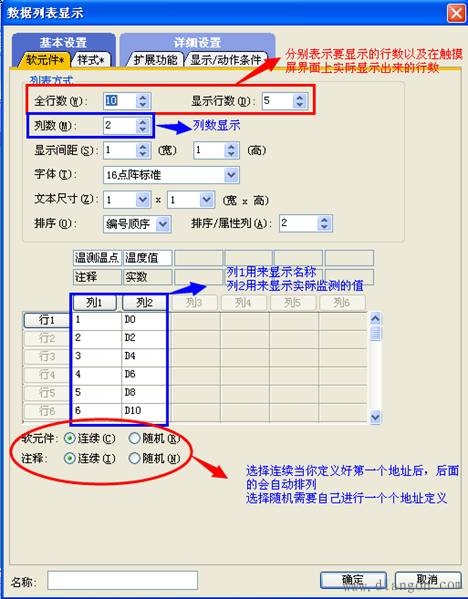 在软元件和注释的选择中如果都选择了连续那么我们只需要点击行1进行组态,如果有选择了随机,那么我们需要点击每一行对其进行组态。