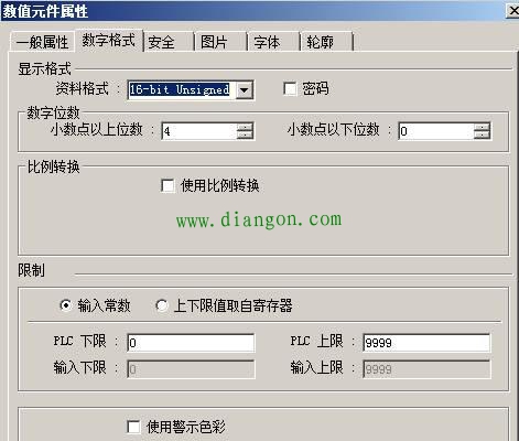 输出功率的数值元件属性设置如下:其中数字格式是16-bit Unsigned。