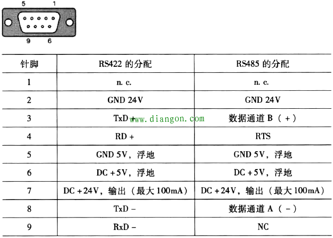 hmi设备上的接口名称:X2;Sub-D插座,9针,以螺钉固定。PR0FIBUS/MPI接口引脚如图2所示。
