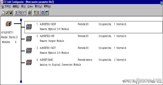 第二种通信初试化设置的方法是使用CC-Link 通信配置的组态软件GX-Configurator for CC-Link。该组态软件可以对A系列和QnA系列的plc进行组态,实现通信参数的设置。