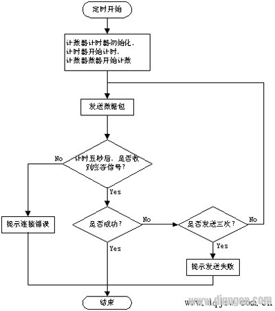 能源采集系统定时主动发送数据包,并准备接受应答信号,5秒后若无应答信号,则提示连接错误;若应答信号为不成功,则重新发送数据包(三次不成功则提示数据发送失败);若应答信号为成功,则结束本次发送。