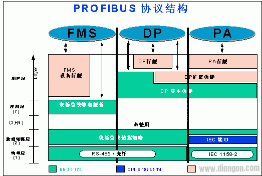 ・ 现场总线信息规范(Fieldbus Message Specification-FMS):描述了通信对象和应用服务。