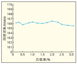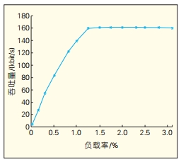 图6中,由于随着负载率增加,吞吐量随之增加,则单位时间内需要处理的信息量增加,从而使得通道的利用率增加。同时,通道由“忙碌”到“空闲”状态所用的帧间隔时间也增加,使得通道不可能连续不断地传输信号,这样随着吞吐量增加并趋于饱和时,网络利用率也随之增加并趋于1,但不会达到1。