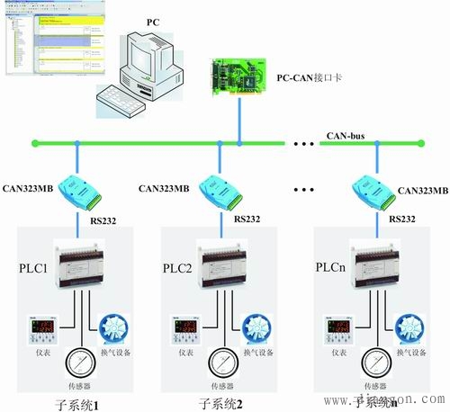 建立PLC网络,除了实现具体功能的PLC设备,还需要一些建立现场总线CAN-bus网络的设备,主要有RS-232转CAN-bus网关、PC-CAN接口卡等。