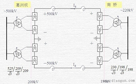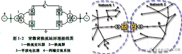 整流站和逆变站的设备通常装设在一个站内,也称背靠背换流站。