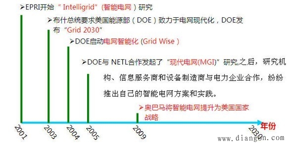 美国:2003年美加大停电后,美国电力行业决心利用信息技术对陈旧老化的电力设施进行彻底改造,开展智能电网研究,以期建设满足智能控制、智能管理、智能分析为特征的灵活应变的智能电网。美国的重点在于实现自愈智能电网。