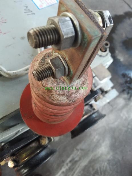下面再来看这是一处变电站所用10KV高压绝缘接线端子。该高压接线端子因为绝缘性能老化而出现绝缘击穿故障。此例故障根结在于人为的检测、巡查工作落实不到位所致。因该绝缘端子击穿而引发的高压接地故障导致某工业园断电达4小时之久,经济损时过百万!