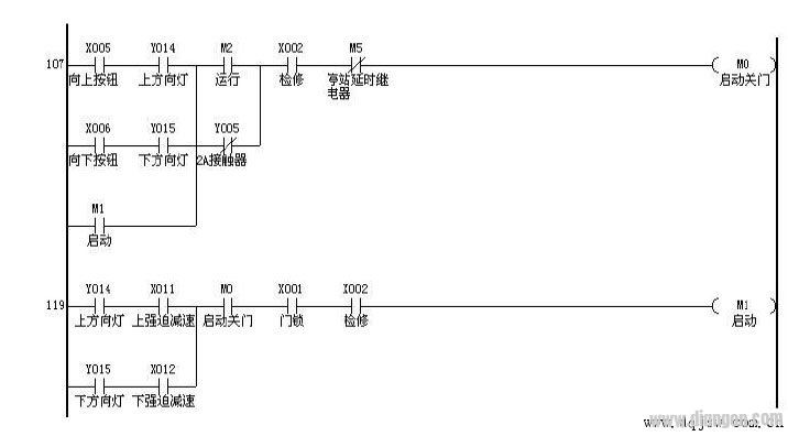 3、当电梯下行时,每当下换速感应器插入隔磁板时,使M1有一个周期的触发。