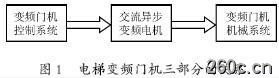 交流异步变频门机通常简称为变频门机,其构成主要分为三部分:变频门机控制系统、交流异步变频电机、变频门机机械系统[2],三部分的关系如图1所示。