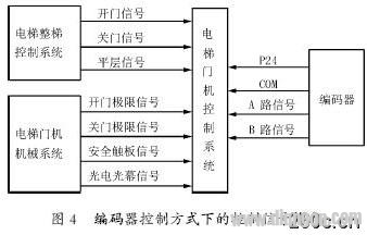 变频门机的运动控制方式分为“编码器控制方式”和“速度开关控制方式”。在使用“编码器控制方式”时,电机尾部安装有编码器,但上坎上不安装速度开关。在这种控制方式下,通过编码器既能检测轿门位置,又能检测轿门速度,因此可以使用位置和速度闭环控制,“编码器控制方式”下的控制信号构成如图4所示。