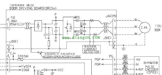 这样的话我们看三菱图纸的时候就可以参考他们的图纸来补充三菱图纸缺失的整流、逆变、充电回路这一块。再比如三菱电梯对于门机这一块的东西基本都是点到为止,图纸提供的东西少之又少,但是富士达的图纸却清楚的标注出了门机板内部的一个走线轮廓