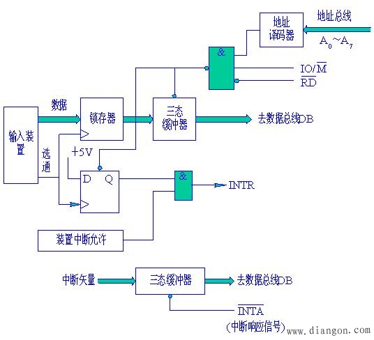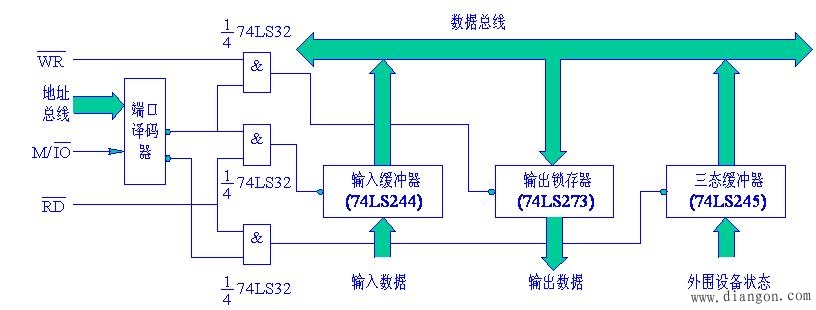 查询式I/O方式也称为条件传送方式。按查询式I/O方式传送信息时,CPU和外围设备的I/O接口除需设置数据端口外,还要有状态端口。查询式I/O接口电路的原理框图如图2所示。