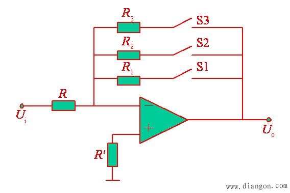 选择不同的开关闭合,即可实现增益的变换。如果利用软件对开关闭合情况进行选择,即可实现程控增益变换。