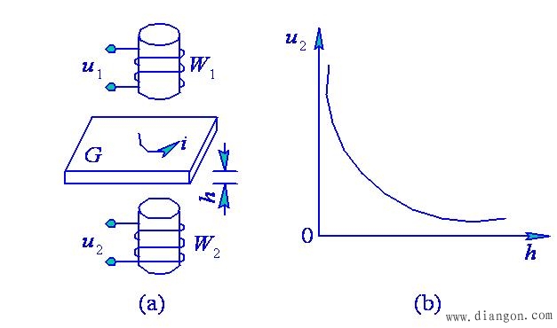 涡流式传感器的变换原理,是金属导体在交流磁场中的涡电流效应。 如图1所示,金属板置于一只线圈的附近,它们之间相互的间距为δ。 (1)高频反射式涡流传感器。 如图1所示, 高频(>1 MHz)激励电流i0产生的高频磁场作用于金属板的表面,由于集肤效应,在金属板表面将形成涡电流。  图1 高频反射式涡流传感器 (2) 低频透射式涡流传感器 低频透射式涡流传感器的工作原理如图2所示。  图2 低频透射式涡流传感器 3.互感型差动变压器式电感传感器 差动变压器式电感传感器是常用的互感型传感器,其结构形式有多种,以螺管型应用较为普遍,其结构及工作原理如图3(a)、(b)所示。  图3 差动相敏检波电路的工作原理 |